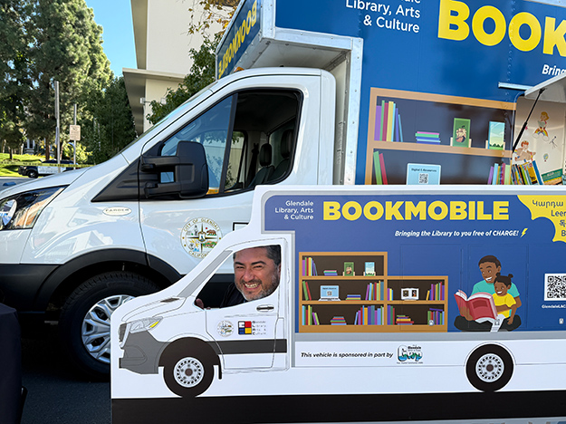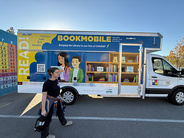 Today's bookmobile event was in front of the police department. The bookmobile was one of the many vehicles that the city uses, including a bunch of cop cars. We were super busy today. Jaclyn wasn't feeling it after a visit from this guy that always makes comments at city council meetings. He asked her for her email and she is now worried. I told her that she can just junk his emails. He asked her while I was having lunch.