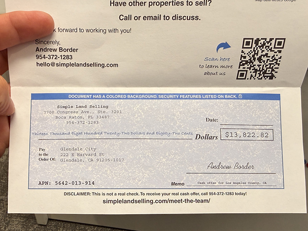 After the route I went upstairs to use the bathroom, since the downstairs one was being cleaned. While up there I visited with Joe and I saw a letter on his desk that looked interesting. I picked it up and it was an offer to buy the library property. The offer was for $13,000 roughly. But, I read it wrong and thought it was $13M. Joe corrected me and we both had a laugh about how $13,000 wouldn't get you much more than a dozen square feet in LA. If that.