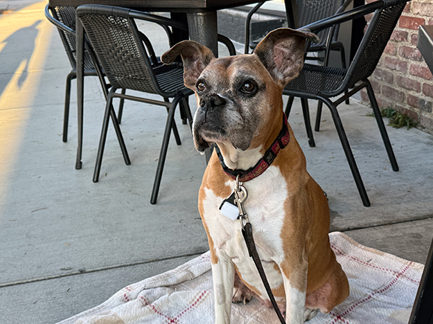 TheGirl and I decided to sit outside on the patio of Dog Haus. We both said that we have the permission to sit inside as well, but tonight we decided to sit outside. The food was yummy. I wanted the love boat with tots, but they made a mistake and gave me fries. The fries were super good, so I didn't mention the mistake. Besides, the main reason for tots was Cheyenne. When we got ready to go TheGirl went to use the restroom and I stayed outside. The empty spot on the patio where Cheyenne would have been was empty. That hurt.