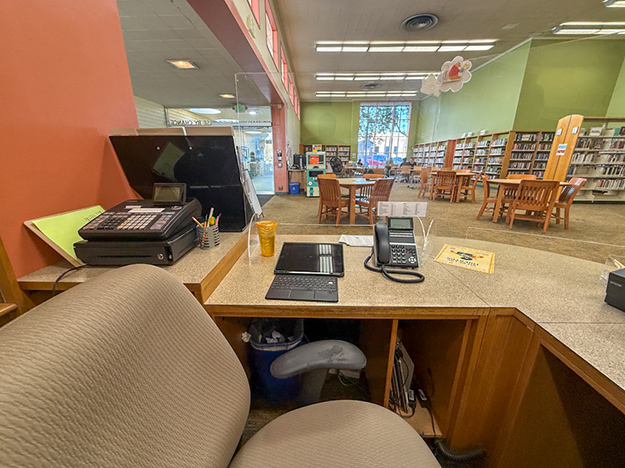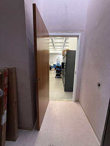 During the 2017 renovation the emergency exit in circulation was taken out. Well, it's taken eight years but we finally have a fire exit. Not sure why they even took it out, because the fire exit was still there. It was just used for the children's room and not us. Well, now if something does happen we have a way out. I always said that we needed that exit if there's an active shooter. Because trying to get out of circulation while having to exit through the hallway, where the gunman might be, would be dangerous.