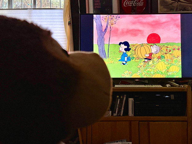 Sunday, October, 26, Inspired by my walk while listening to the soundtrack of the Great Pumpkin yesterday, I decided to bust out the DVD of that show. I watched it with Chan on my lap. I loved it so much I watched it twice.