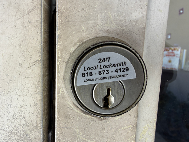 I walked up to the Montrose library this morning only to find that someone had placed a sticker advertising a locksmith on the front door. I had a feeling it was wrong, but I didn't want to take it off. So I emailed the manager. I didn't expect a reply, so I left. She did reply, and she told me to take the sticker off. I told her I was already gone. I wonder why these dopes think it's OK to do this. Because this implies that the library endorses their work. Dumb.