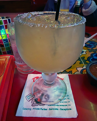 At lunch I ordered a margarita, and they served me a giant sized one. Good, I need a drink... badly. The Don Cuco in Toluca Lake never serves their margaritas this big. What gives? When I got home I was talking to my buddy, and I had some whiskey. I need whiskey to get through this. All of it.