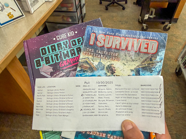 Mary did the holds today and she hands me the paper and tells me she didn't find two. I went and check and found them right where they were supposed to be. Hmmm... strange. How did Mary miss such obviously available books? This is the second week she's done that.