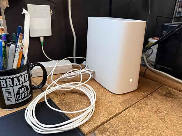 Tuesday, October, 7, The AT&T man showed up this morning to install fiber internet. He was quick and got me up and running in less than two hours. I think my situation helped a lot, because I already had a hole that he could use to get the fiber inside the house. It used to be the cable line that went through that hole, but now it's the fiber. Easy peasy.