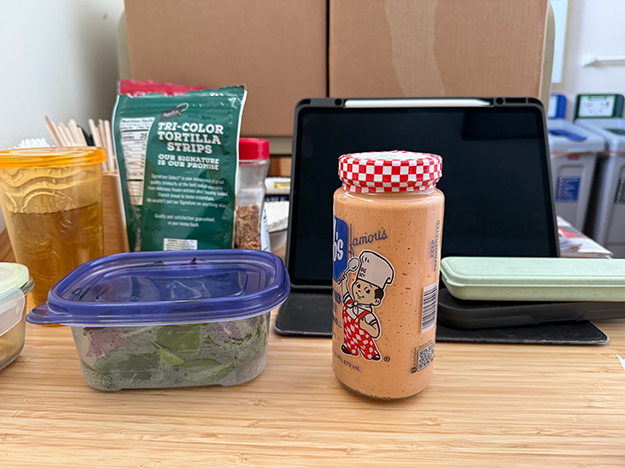 In my haste this morning I forgot to take my salad dressing with me this morning. I got the salsa container confused with the salad dressing container. ARGH! I went to the kitchen at Brand to see if I could find some dressing. I did, thankfully. I fucking hate that I'm a fucking mess these days and I forget things.