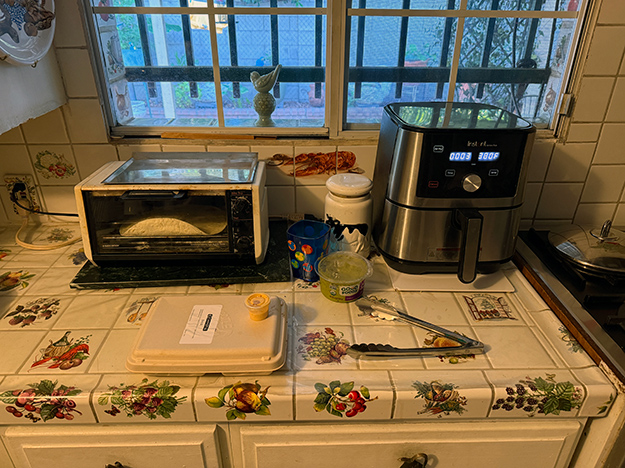 Sunday, October, 19, Wasn't sure what I wanted for breakfast today. I didn't want to eat the second half of yesterday's quesadilla, but I didn't know what to make. So, I grabbed a chicken patty from the freezer and put it in the air fryer. Then I got a tortilla and some guac and boom... scavenger breakfast.