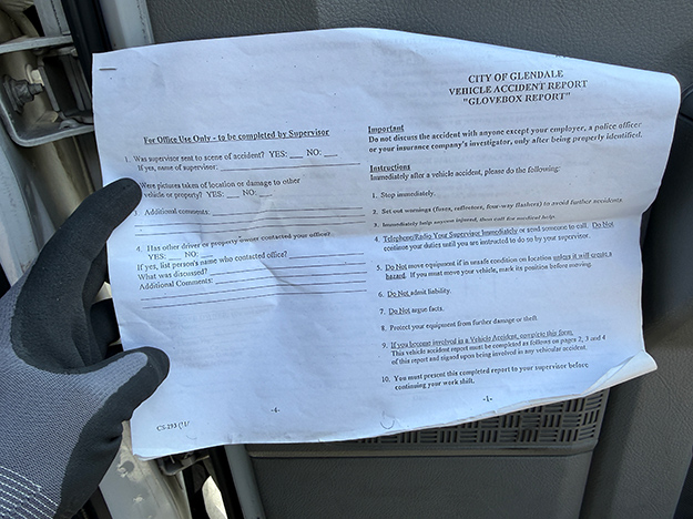 The last time I went out in the bookmobile some dummy almost tapped the vehicle as they tried to park in the spot the bookmobile was vacating. That brought up the idea of what needs to be done if we did have an accident while driving the bookmobile. If I don't bring these things up Krishna sure doesn't think it. Well, I told her we need to know where the paperwork is, and if it's changed. While I was dealing with the van repair I talked to the guy at the garage and he gave me all the new paperwork that is needed if we ever get into an accident. Another win for me.