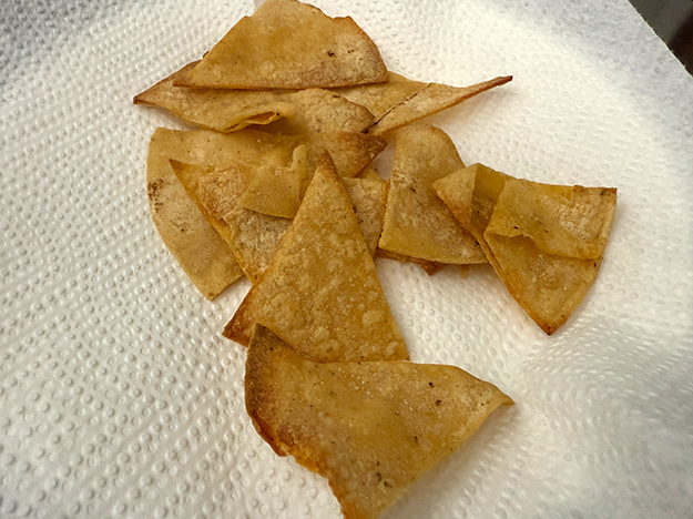 I tried eating some of my homemade chips with my lunch today and it was awful. The chips were chewy and hard. Definitely doing it wrong. I think I might try again with small batches of one tortilla at a time. Which is super time consuming. That is, if I want to continue using the air fryer. The better way might just be to fry them up in a pan.