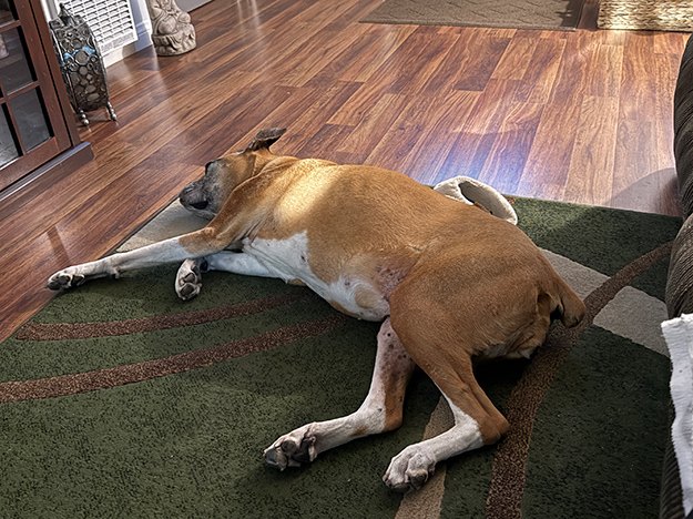 Cheyenne was not happy when we returned. We went on a little walk with Chan completing the quartet. By that time it was still warm, but much cooler. I feel bad leaving Cheyenne at home on our Wednesday dinners, because how many do we have together? Dozens? Each one is special. TheGirl filled Cheyenne's belly with treats when we got back from our walk. She deserved them.