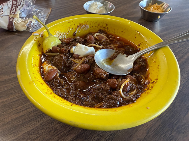 I wanted to eat something special today, but I wasn't sure what I wanted. After going to the Red Cross, and finding out the best time for a walk in would be 9:30am on Saturday or Sunday, I decided to eat at Chili John's. The chili was good, but the waiter wasn't too pleasant. I wanted onion rings with my chili and he snaps that he doesn't have any. Further he tells me that he is going to make them entirely from scratch, but in the future. Great, how does that help me now?