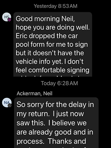 Friday, September, 12, I texted Sarah today to say hi, and to mention the whole thing that it was hard for her to make a difference here because of management. The following is her response.