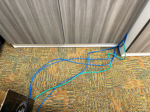 When they installed the new office furniture at Casa they done fucked up the cables. For now they have the cables just out in the open. This is some major Mickey Mouse. Vivian says the city is going to fix it, but to me this is a big problem that shouldn't have been. Oh well, not my problem.
