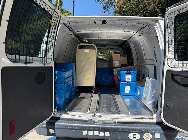 I was disembarking the bins from the loaner vehicle when I received a call from my coworker Tony telling me that the delivery van was ready. It was still early, so I decided to jet over there to pick it up.