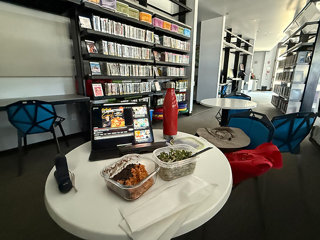I took my time at Brand to have my lunch and to walk around the inside of the library to get my steps. There was no way I was going to take my walk outside. The humidity is too much, and the weather is really affecting me these days. I walked about a mile before one of the city workmen came up to deal with a contractor that was there to fix one of the glass doors.