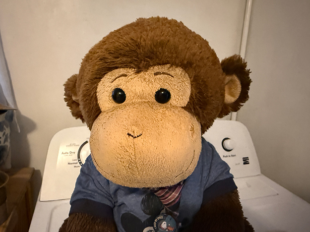 I looked at Chan this afternoon with my glasses on and I saw how filthy he looked. OMG! His face and hands and feet were so dirty. When I got home I scrubbed him all up and cleaned him as best I could. I think hims looks a lot cleaner.