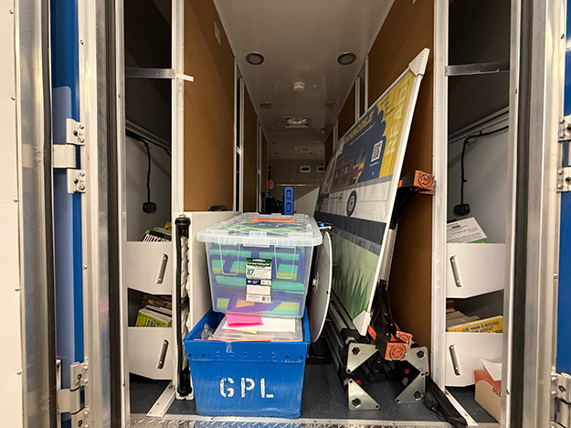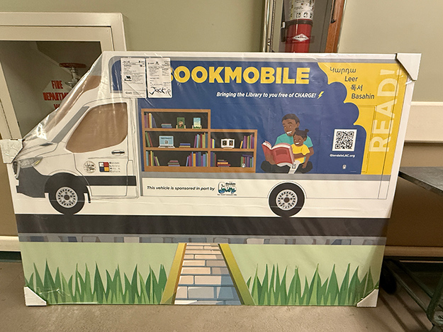 Today was another wall to wall bookmobile day. First we had to be at the school district offices to show off the bookmobile to everyone. We were super busy, mainly because the district had one vendor giving away Nikes, and another was giving away backpacks. Who doesn't want free stuff? Well, because of that free stuff today's visit was one of the busiest we've had. Good times. I will pat myself on the back for today. I did a lot.