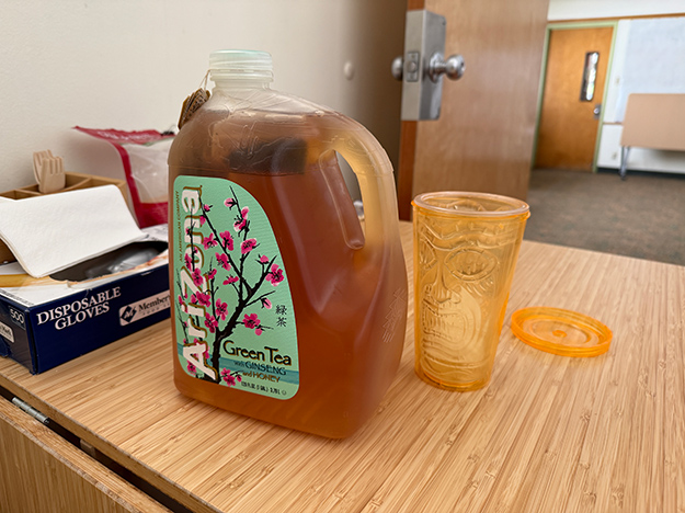 I wanted to get my steps in today, but it was too warm during my lunch hour. Afterwards it cooled down a bit, but it was still muggy. Not good walking weather, especially since I can't be stinking up the joint at work. So, no steps today. Except to go to the market to get some tea for my jug here at Casa.