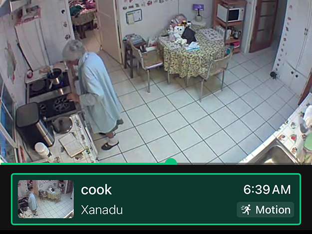 My aunt says she's sleepy while warming up some bread to eat at 10:15pm.